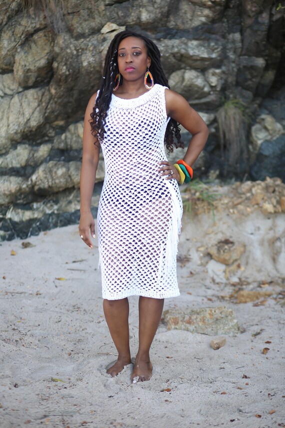 White Crochet Dress With Fringe Swimsuit Cover Handmade Etsy
